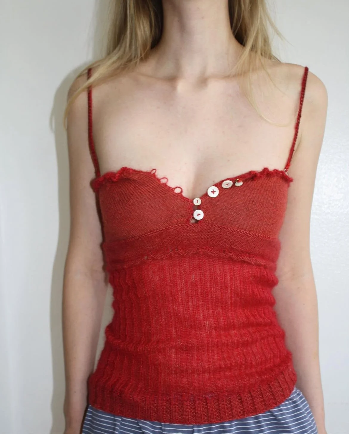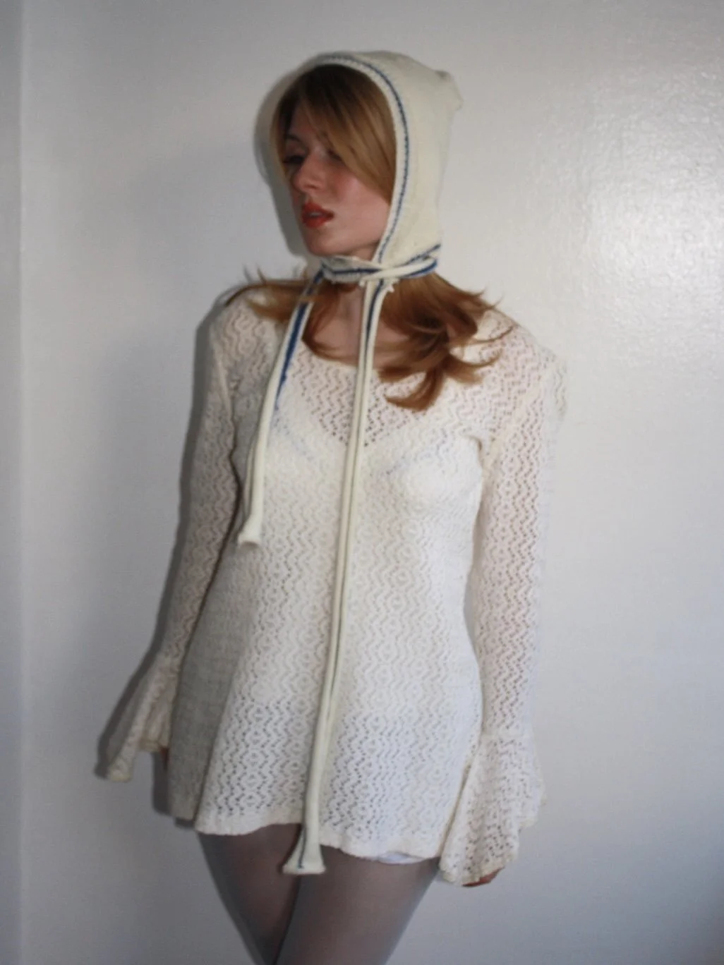 Shop Categories: Select a Category Patterns Custom Orders Made to Measure One of One Shop Patterns Custom Orders Made to Measure One of One Babydoll Blouse #1 & #2 Hand Knitting Pattern $14.00 Babydoll Blouse #1 - All Color Options from $215.00 Babydoll Blouse #2 - All Color Options from $238.00 3/4 Sleeve Babydoll - All Color Options $275.00 Mohair and Silk Headscarf from $85.00 Bone Button Mod Skull Fitted Bonnet $175.00 Sweetheart Tank- All Color Options $190.00 Whimsy Ribbon Scarf Bonnet $165.00 Babydoll Bloomer $190.00 Silk Black Backless Buckle Tube Top $250.00 Red Micro Mini Short from $150.00 Micro Mini Short Blue from $145.00 Multi-Gauge Jersey $390.00 Needles Daisy Duke's $425.00 70's Tiles Beach Short $185.00 Shrunken Steel Blue Patterned Hoodie $330.00 Silk Barbie Pink Cropped Hoodie $425.00 Cropped Boutique Yarn Hoodie $300.00 Sold Out Custom Orders $50.00